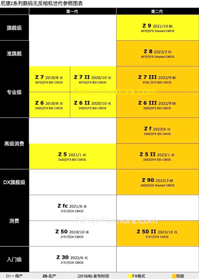 尼康Z7MarkIII是一款基于高分辨率傳感器的機身(主打靜態圖像能力),所以如果尼康Z8提前帶來,那么尼康Z7MarkIII相機很有可能會相隔7到8個月(以恢復銷售)推出。尼康永遠不會同時發布兩個高分辨率傳感器機型。