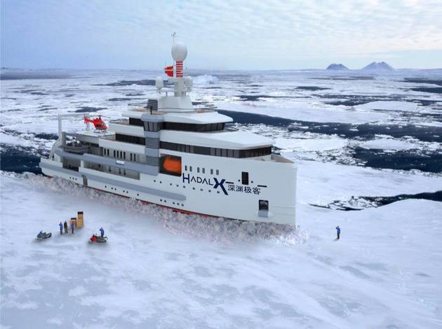 “深淵極客”號將是我國首例由民營企業投資建造的極地科考探險船,旨在推動我國極地科考研究工作并帶動極地海洋科技服務業的發展,除了具有極地破冰能力,“深淵極客”號還將配備自主研制的無人、載人深潛器,包括11000米潛水器、4500米潛水器、100米潛水器及多種水上交通工具,從而彌補目前極地海域下潛科考作業不足的難題。