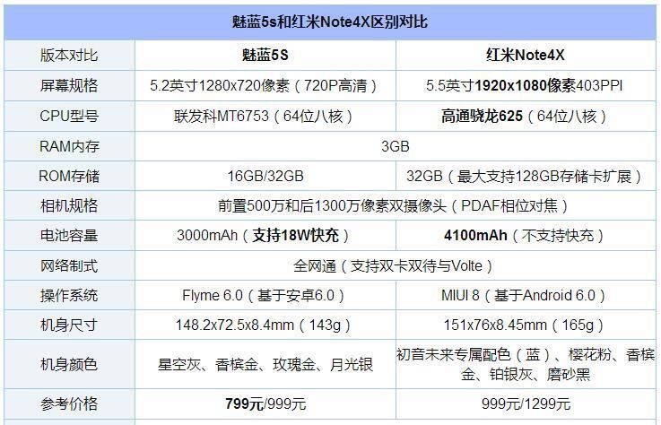 999元高配版魅藍5s VS 999元標準版紅米Note4X