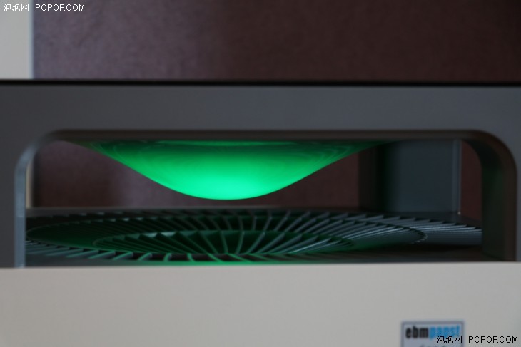 ↑ 在出風口內部有一個充滿設計感的空氣質量指示燈,好像水滴快要滴下來的樣子。這個指示燈的亮度在夜間可以做為小夜燈來使用,如果你把凈化器放在臥室內,也可以關掉燈光防止光污染。