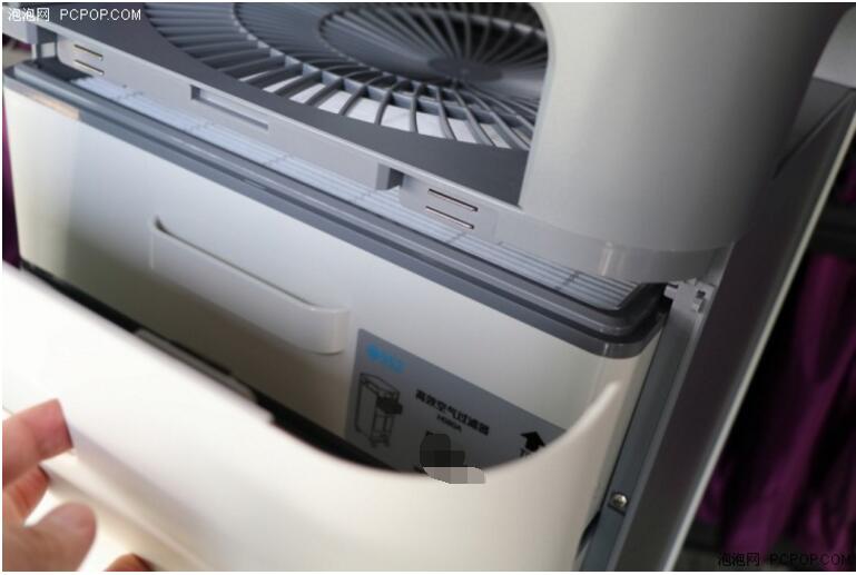 ↑ 打開X83的后蓋,就可以更換濾芯了。X83的后蓋帶有智能開關,打開自動斷電停機,避免小朋友誤打開后蓋將雜物丟入風機造成損壞。