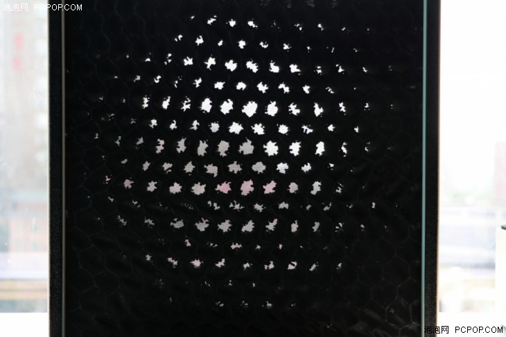 ↑ X83活性炭濾網內的活性炭顆粒,被固定在一個個蜂巢結構之上,透過光線可以看到其中保證了風路的通暢。使勁兒搖晃活性炭濾芯,并沒有碳粉掉落,仔細聞也沒有任何的酸味,說明352 X83的活性炭選料還是足夠優質的。