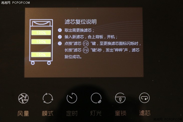 ↑ 機身上可以按百分比顯示濾網壽命,便于用戶更換。