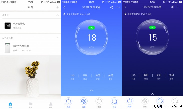 App可以實現開關機、檔位調節的操作。并且在App端,可以同時顯示室內污染物濃度的狀況。