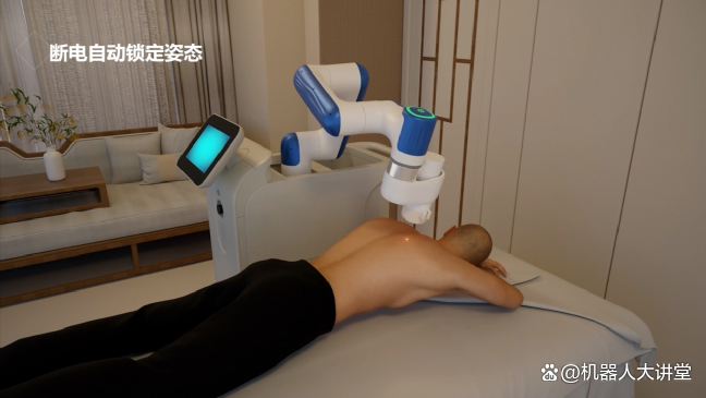 其次是智能感知人體動作。在如艾灸這樣的特定場景中,DOBOT Nova能實時監測人體動態,始終保持安全距離,當人體突破安全范圍,機械臂會立即抬升高度,避免傷害人體。